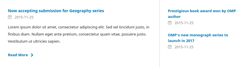 Our browse block plugin will be familiar to OMP users and it will play a strong role in the new frontend as well. For OJS users, we’ll be working on simple, clear navigation patterns for journals as well. For both, we’ve included a prominent search bar to locate items quickly.