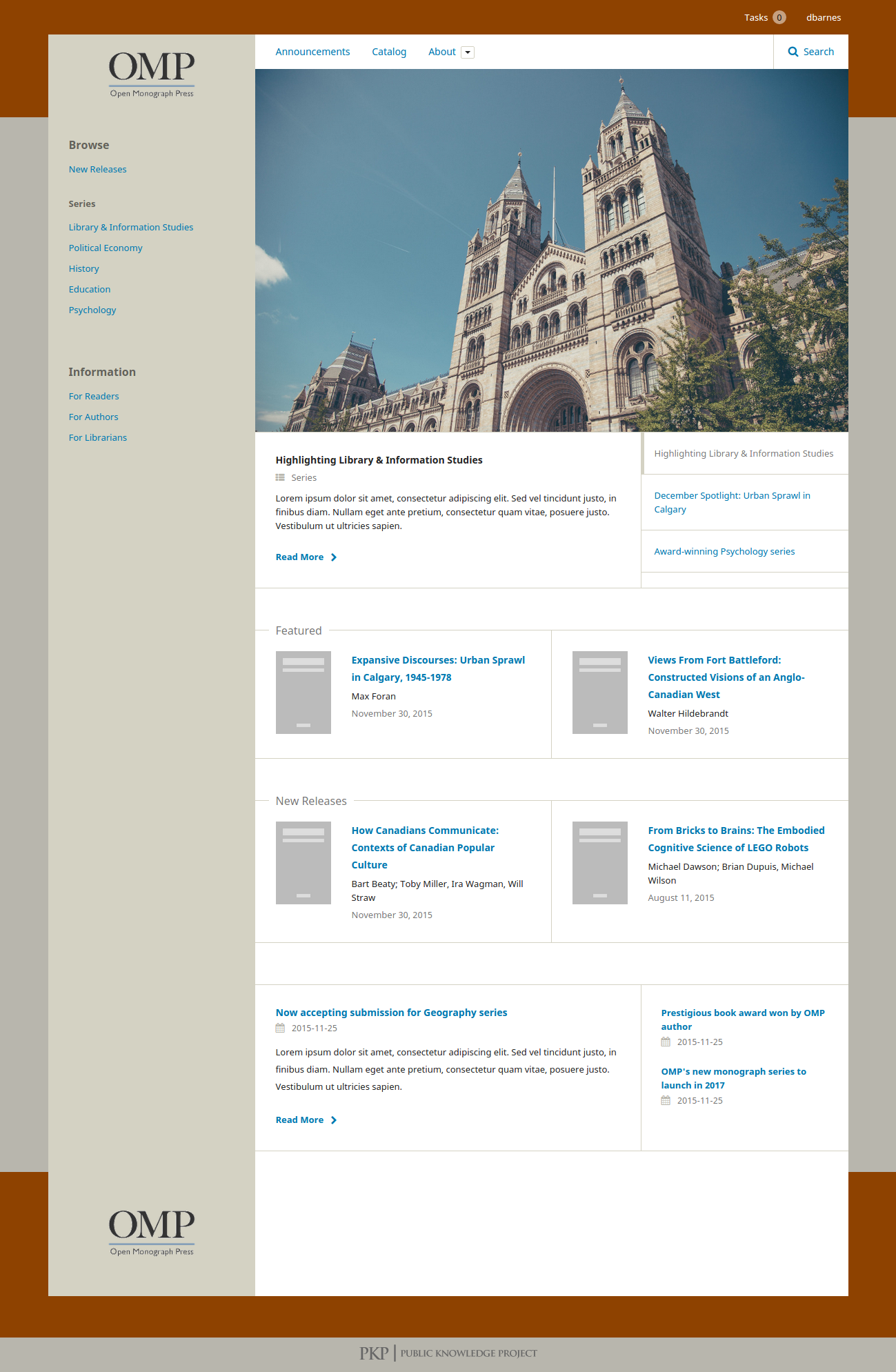 The biggest challenge when designing an open platform like PKP’s software suite is finding a design which can accommodate the vast diversity among our users. Some will have a lot of resources, high visual impact and a marketing team writing copy. Others will get by with a smaller team and a smaller budget.