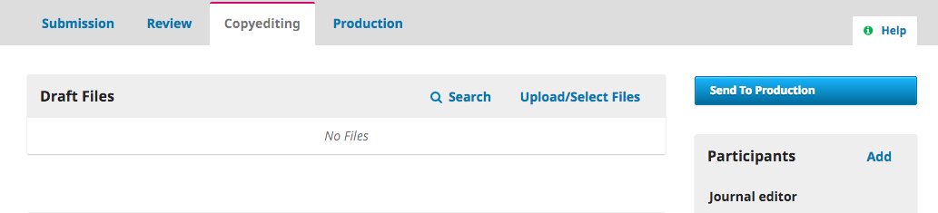 To increase editorial flexibility, you can easily move a submission from one stage to another without completing any of the possible tasks on that stage. You don’t do copyediting? No problem, just skip it with the Send to Production button.