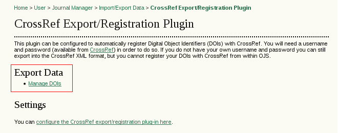 The DOI managing pages are reorganized and simplified: Instead of previous three menu items (“Export unregistered articles”, “Export Issues” and “Export articles”) now there is one main menu item “Manage DOIs”, leading to the main article DOIs page.