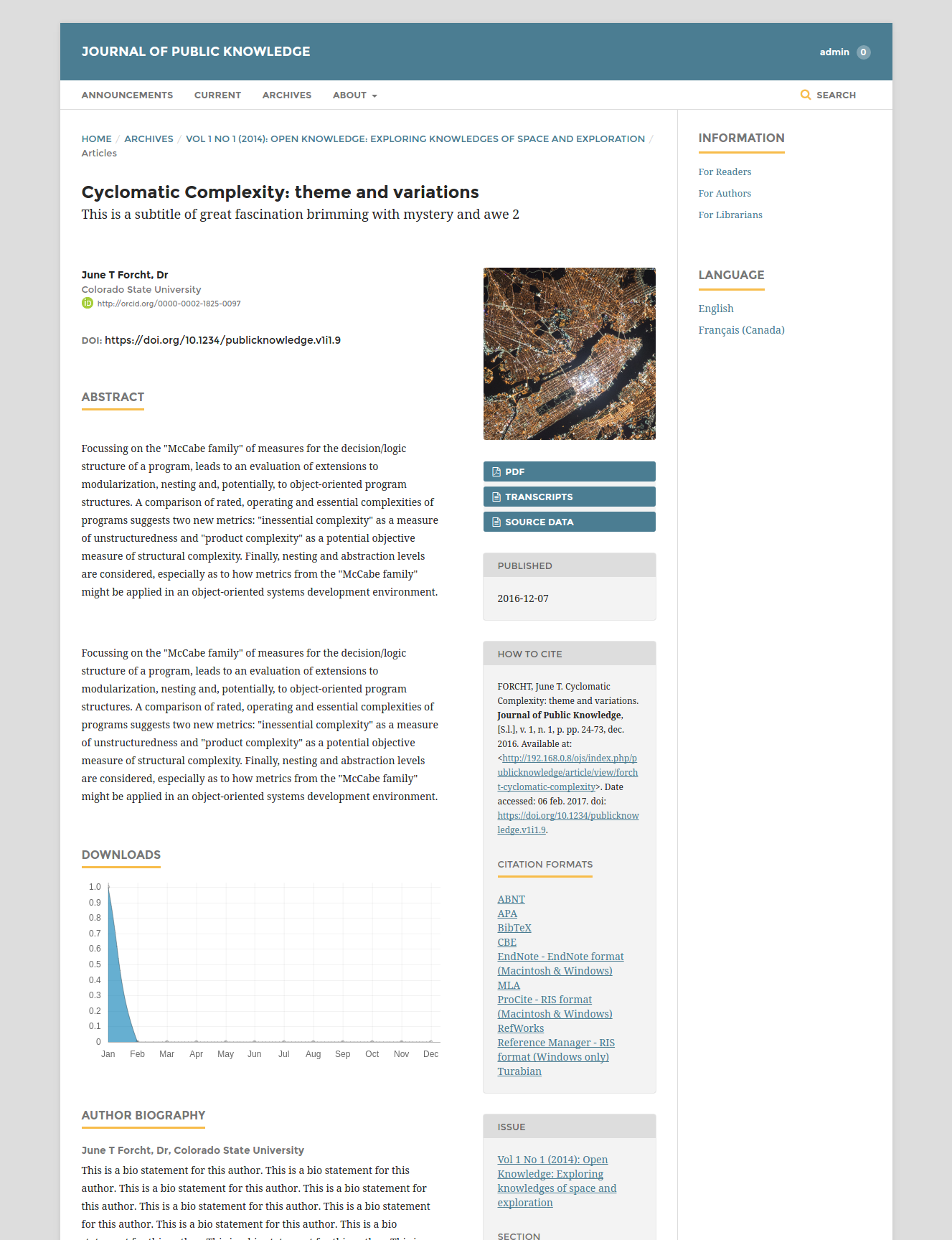 Manuscript is a new child theme for OJS 3.0.2+. This theme provides a clean, simple style with a boxed layout that mimics a paper document.