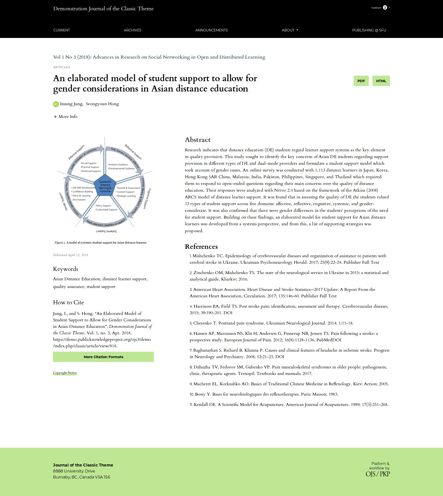 You can see how the Canadian Journal of Higher Education has used their own colors when implementing the Classic theme for their journal.