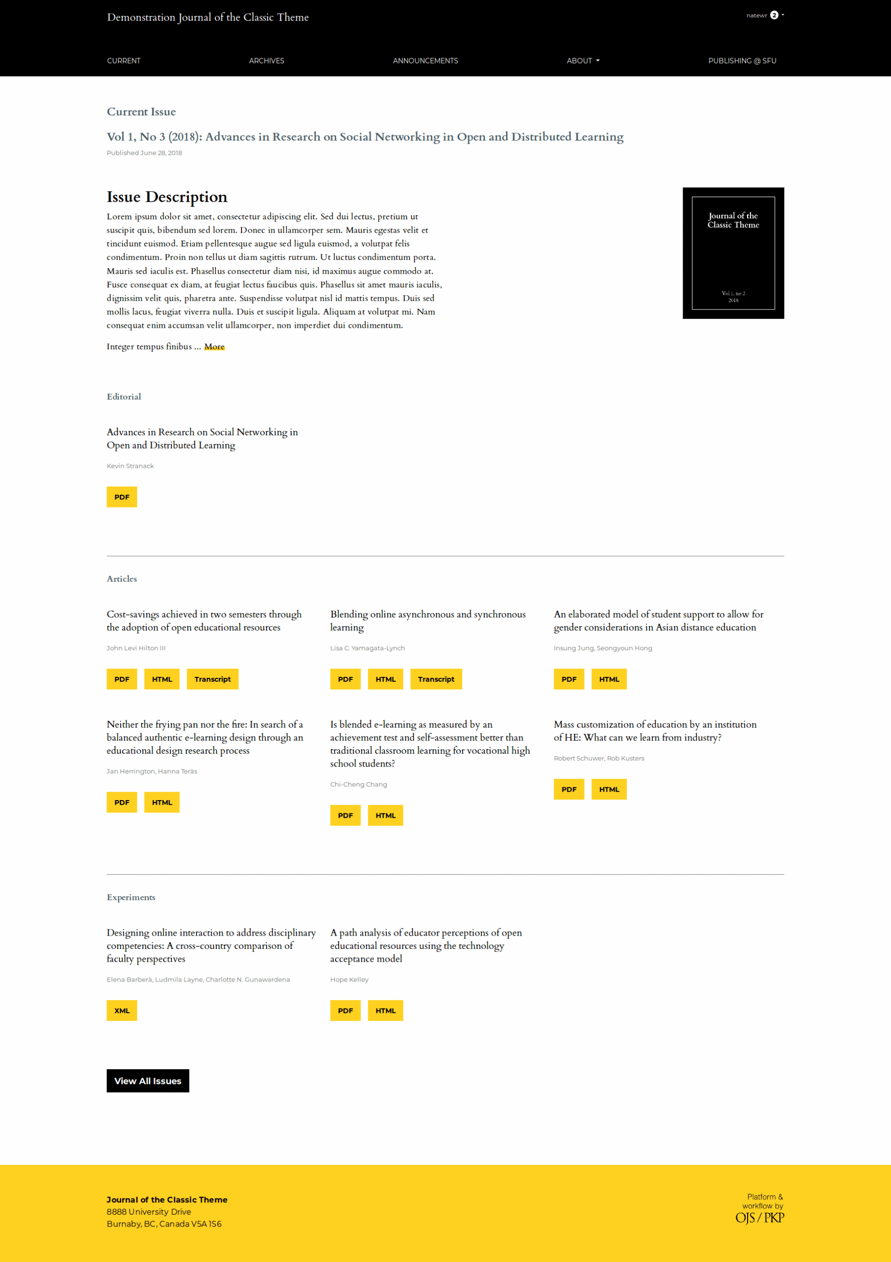We are very pleased to announce the release of the new “Classic” theme, freely available to the OJS community. You can view the online demo and install it today from your plugin gallery if you are running OJS version 3.1.1-1 or later.