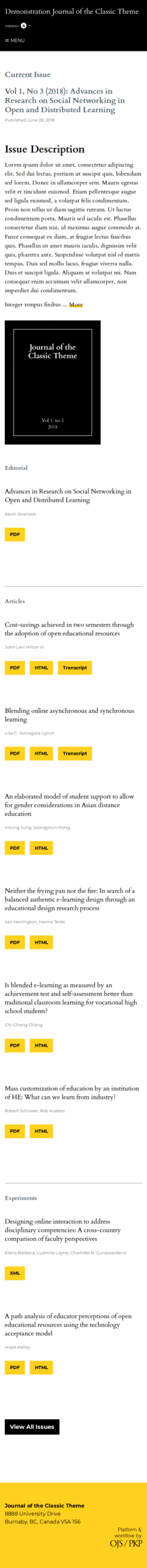 This theme follows the earlier release of the Health Science theme, and we have more on the way. Our goal is to provide a variety of distinct, easy-to-implement themes that best match your needs and demonstrate how attractive OJS can be!