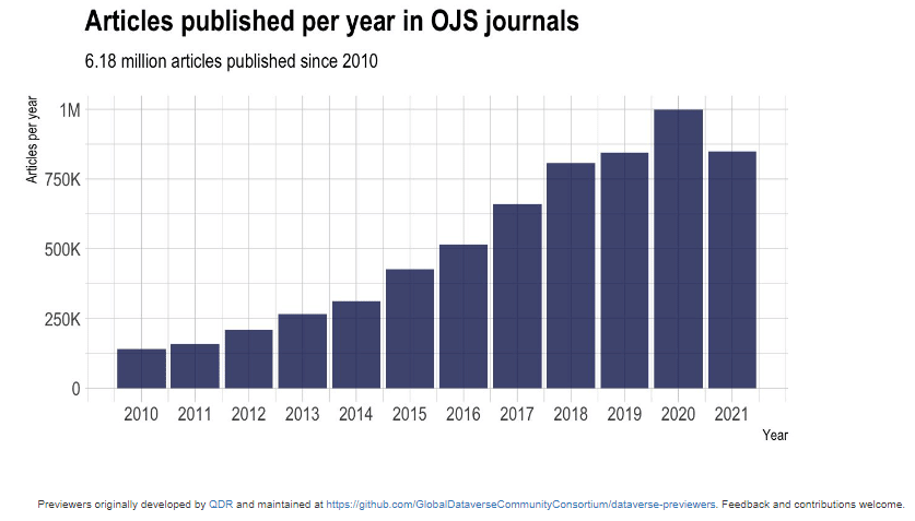 PKP’s software is widely used around the world, but it is only now that we feel confident in stating that Open Journal Systems (OJS) is supporting over 25,000 active journals, collectively publishing up to a million articles per year. Keeping track of this large user community is challenging, but comprehensive and research-based data collection regarding the OJS publishing community has allowed PKP to provide an accurate snapshot of those who use OJS.