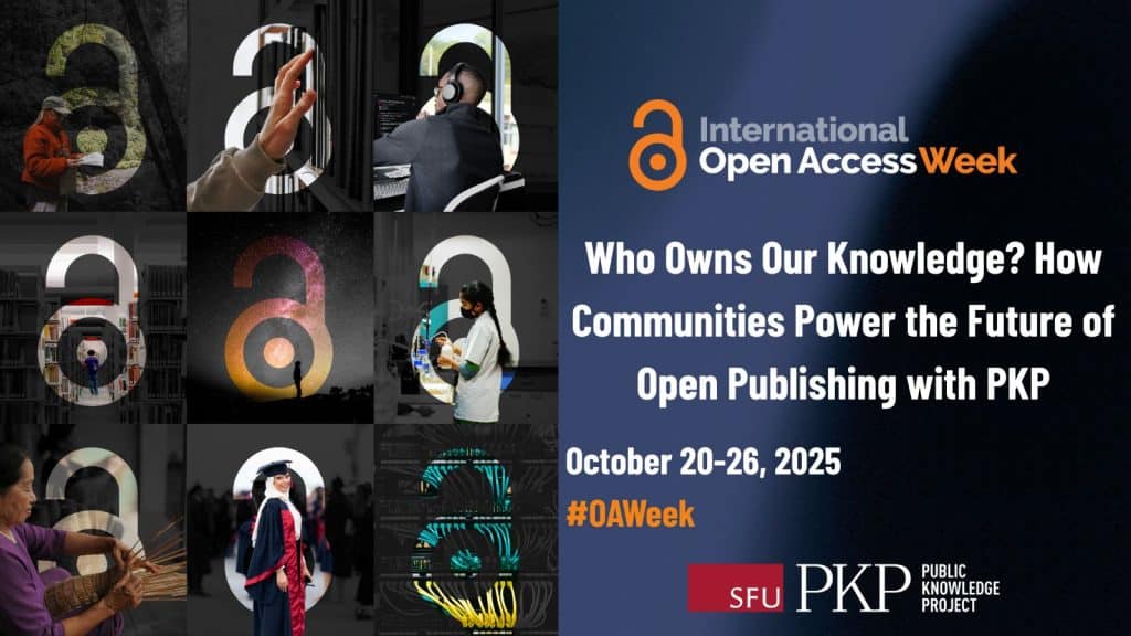 This October 20 – 26 is International Open Access Week 2025, organized by SPARC in partnership with the Open Access Week Advisory Committee. PKP takes the time to answer the theme question, “Who Owns Our Knowledge?” and invites communities to join in.