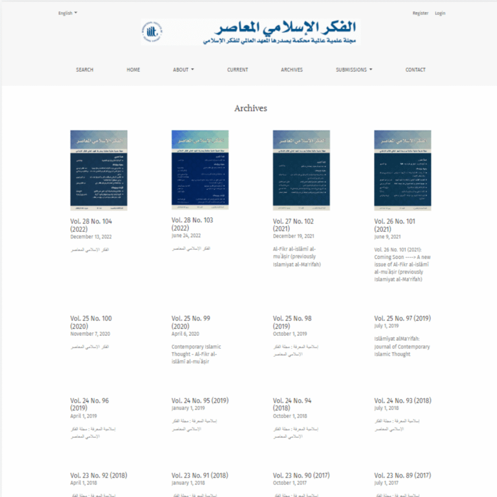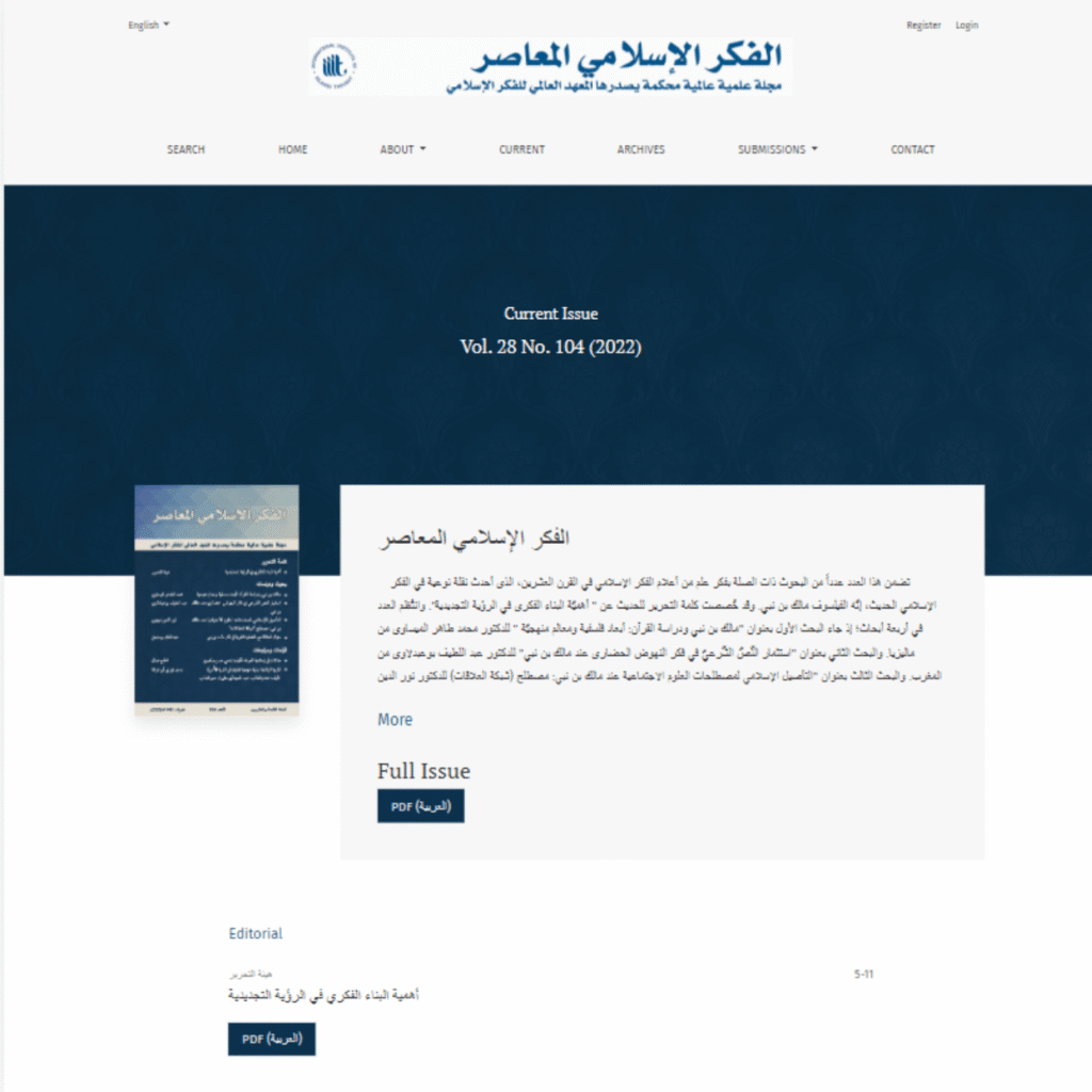The International Institute of Islamic Thought has been a PKP Publishing service hosted client since 2018, using one of OJS themes to customize its image and publish articles in Arabic and English metadata. In 2019, the IIIT started using Open Monograph Press to publish its Department of Publication and Translation (DPT) multilingual books.
